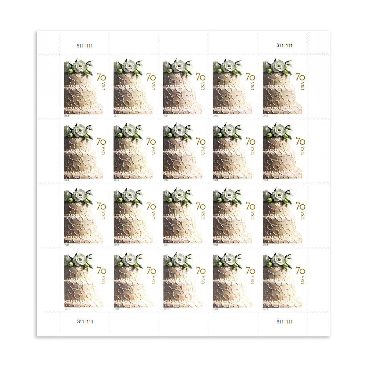The 2014 66c Imperf Wedding Cake USPS stamp features a refined design created for higher-rate and specialty mail use.