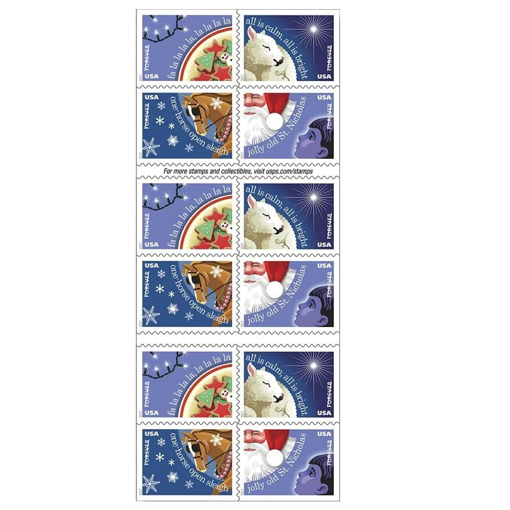 The 2017 Christmas Carols USPS Forever® Stamps feature four classic holiday scenes, perfect for seasonal greetings and professional mailing. As official united states postal service stamps, these traditional designs add a touch of warmth to your first class stamps that digital mail cannot replicate.