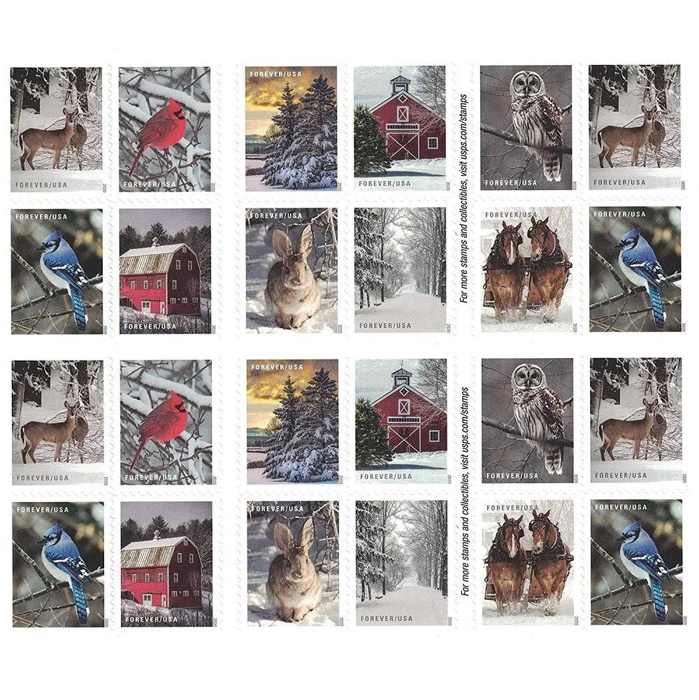 The 2020 Winter Scenes USPS Forever® Stamps capture the cozy spirit of winter with ten unique illustrations. These postage stamps are a top choice for those looking to buy postage stamps online for holiday greetings and family cards. They provide a Tangible quality for first class postage that reflects a premium brand image during the festive season.